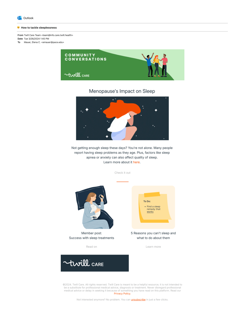 Menopause journey email sample